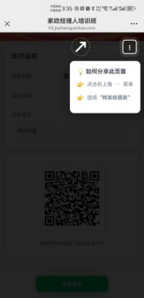 ② 将页面生成的订单二维码发给客户或者直接使用微信自带的分享功能分享页面给客户。